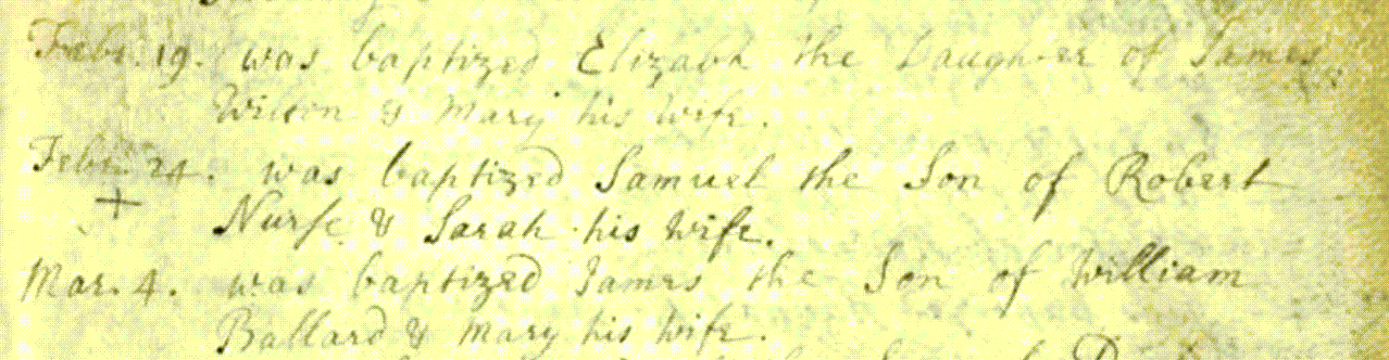 The first reference to Robert and Sarah Nurse in the parish register is to the baptism of a daughter, Ann on 8th July 1736.100